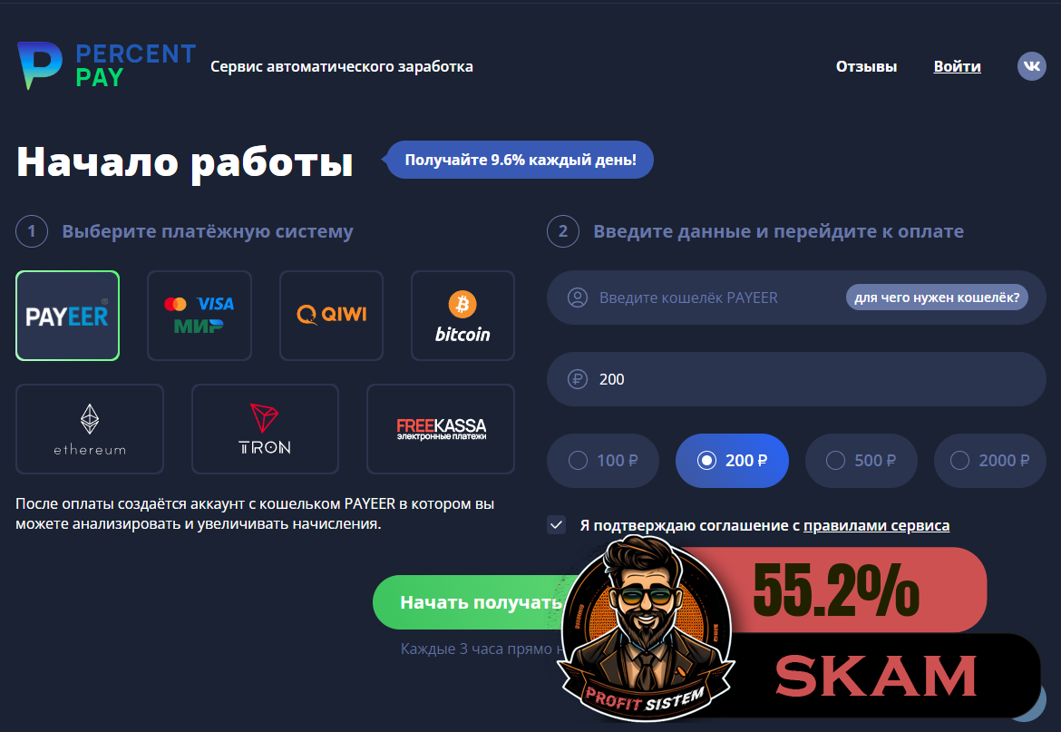 Зашел в классный майнер. Старт был буквально только что. Админ в прошлом проекте нас уже озолотил :) В этот раз проект еще интереснее. Дизайн хоть и простой но смотрится классно. СТРАХОВОЙ ФОНД 1000 RUB Инвестируем безопасно! Маркетинг приятный, по 9.6% каждые сутки Начисления прибыли каждые 3 часа. И сразу, автоматически выплачиваются на Ваш Payeer Зарегистрировались, пополнили и даже не надо больше заходить на сайте:) Пополнить можно различными способами. Выплаты Автоматические. Есть чат и группа в ВК