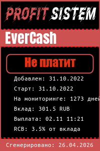 EverCash - Описание Выплаты Статистика проекта | Хайп мониторинг ProfitSistem | Блог о инвестициях и Хайп проектах | HYIP monitoring