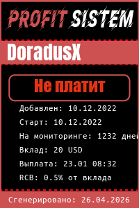 DoradusX - Описание Выплаты Статистика проекта | Хайп мониторинг ProfitSistem | Блог о инвестициях и Хайп проектах | HYIP monitoring