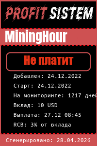 MiningHour - Описание Выплаты Статистика проекта | Хайп мониторинг ProfitSistem | Блог о инвестициях и Хайп проектах | HYIP monitoring