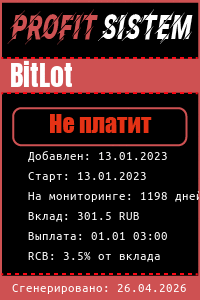 BitLot - Описание Выплаты Статистика проекта | Хайп мониторинг ProfitSistem | Блог о инвестициях и Хайп проектах | HYIP monitoring
