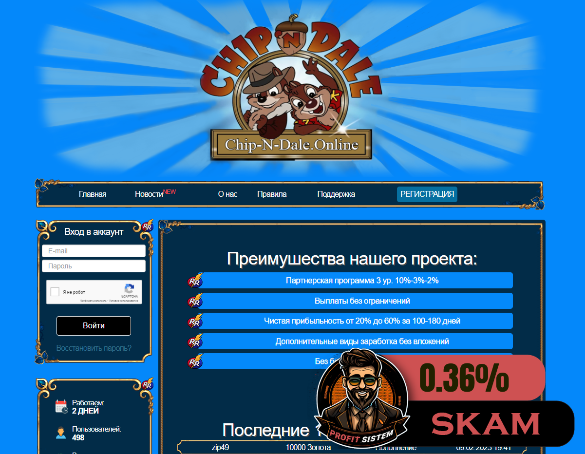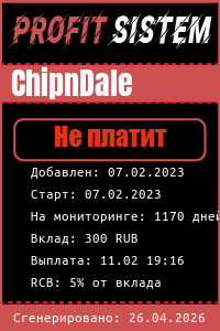 ChipnDale - Описание Выплаты Статистика проекта | Хайп мониторинг ProfitSistem | Блог о инвестициях и Хайп проектах | HYIP monitoring