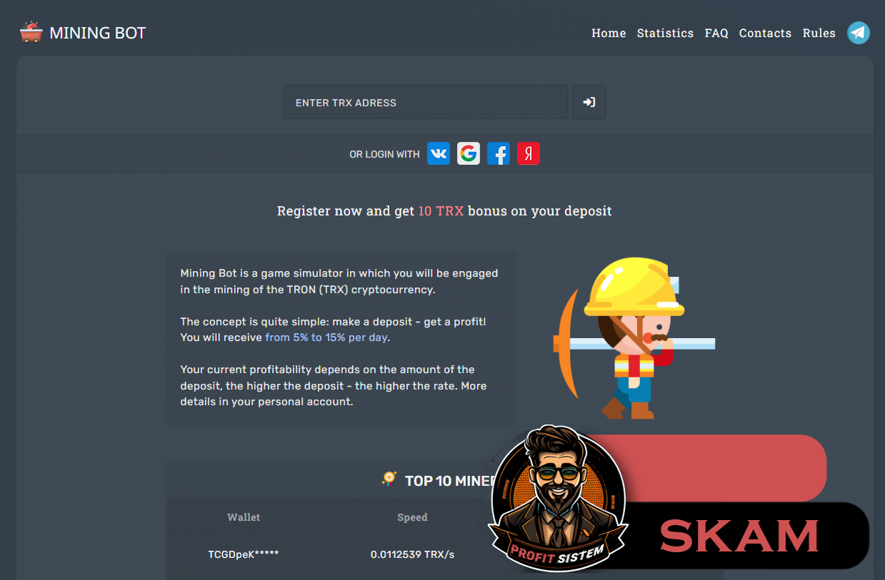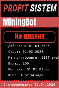 MiningBot - Описание Выплаты Статистика проекта | Хайп мониторинг ProfitSistem | Блог о инвестициях и Хайп проектах | HYIP monitoring