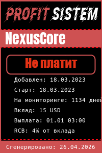 NexusCore - Описание Выплаты Статистика проекта | Хайп мониторинг ProfitSistem | Блог о инвестициях и Хайп проектах | HYIP monitoring
