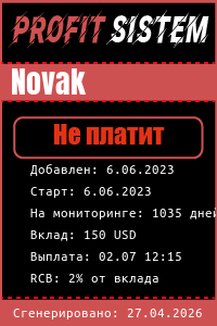 Novak - Описание Выплаты Статистика проекта | Хайп мониторинг ProfitSistem | Блог о инвестициях и Хайп проектах | HYIP monitoring