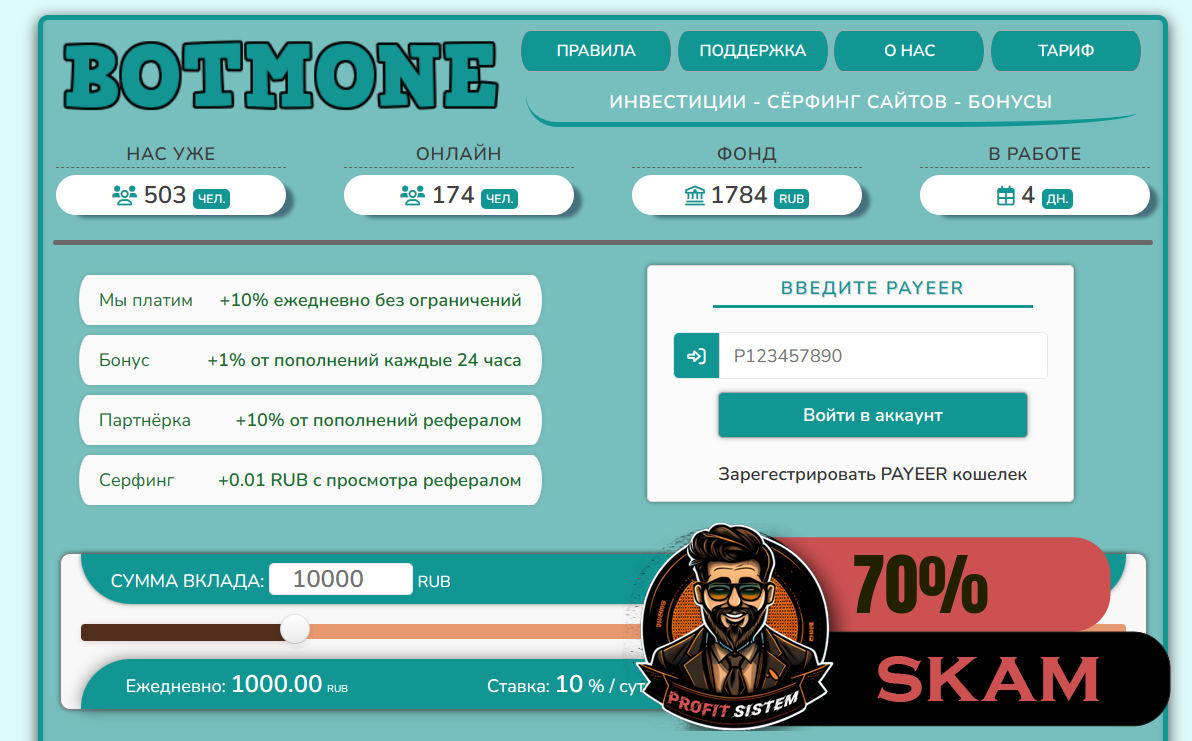 Зашел в интересный Майнер Примелькался он мне :) Работает не первый день Смотрю потихоньку развивается Недавно добавили рекламные баннеры В проекте есть Бонусы и Сёрфинг Маркетинг вкусный. Платит по 10% в сутки Начисления каждую секунду. Вклад работает на бессрочной основе. Регистрация простоя, через Payeer кошелек По возможности используйте новые кошельки (особенно если используете проект для рекламы) Выплаты мгновенные, инстантом.