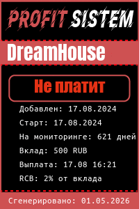 DreamHouse - Описание Выплаты Статистика проекта | Хайп мониторинг ProfitSistem | Блог о инвестициях и Хайп проектах | HYIP monitoring