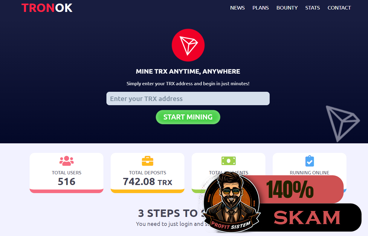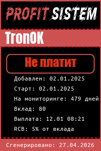 TronOK - Описание Выплаты Статистика проекта | Хайп мониторинг ProfitSistem | Блог о инвестициях и Хайп проектах | HYIP monitoring