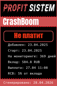 CrashBoom - Описание Выплаты Статистика проекта | Хайп мониторинг ProfitSistem | Блог о инвестициях и Хайп проектах | HYIP monitoring